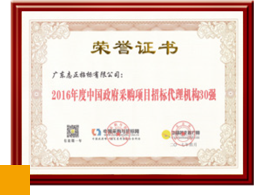 2016 年度中國政府采購項目招標(biāo)代理機構(gòu) 30 強
